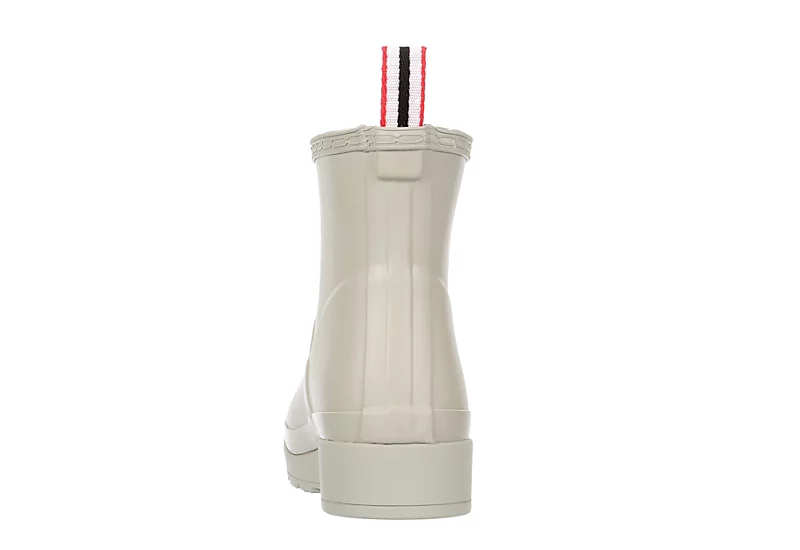 Like the Original Boot, but simplified is the Hunter Play Short women’s rain boot. With a waterproof rubber upper and a recycled polyester lining & insole, this pull-on shoe has a flatter platform sole for versatility. The Hunter-branded outsole offers flexible traction on any surface.
